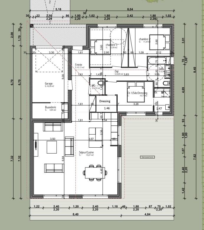 Au Stade Clés en Mains au prix de 240 000 euros*,avec un climatisation gainable, un chauffe-eau thermodynamique, et baies vitrées dans toutes les piéces de vie et de nuit, une baignoire et une douche avec parois vitrées,2 séches serviettes,du carrelage dans les couloirs,piéces de vie,SDB et SDE.Du parquet sera posé dans les chambres.